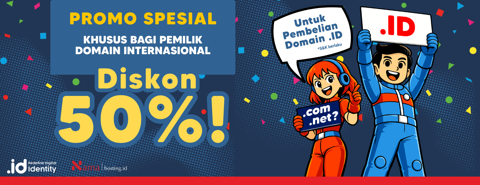 Kabar baik untuk kamu pemilik domain internasional! Kini saatnya memperkuat identitas brand di Indonesia dengan domain .ID dengan harga spesial.